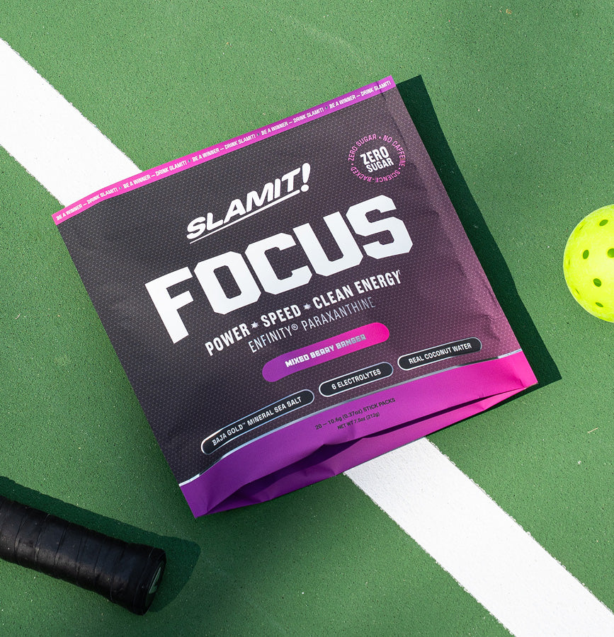 The new energy drink alternative that fixes your focus with no caffeine. Builds on our SLAMIT® Hydrate base formula with three additional, science-backed ingredients—including enfinity® Paraxanthine—to help you mentally and physically dominate the court.
