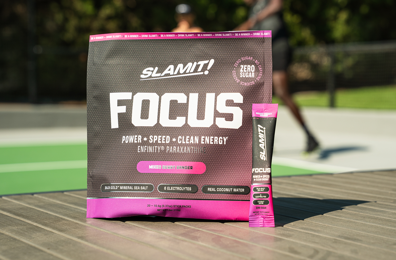 The new energy drink alternative that fixes your focus with no caffeine. Builds on our SLAMIT® Hydrate base formula with three additional, science-backed ingredients—including enfinity® Paraxanthine—to help you mentally and physically dominate the court.